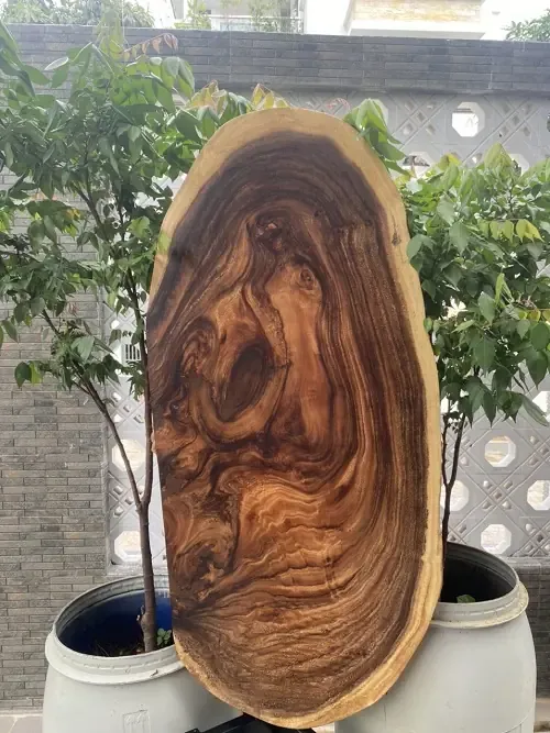 Bàn Tròn Nguyên Tấm Gỗ Me Tây Kiểu Tự Nhiên từ cây gỗ me tây lâu năm. Kiểu dáng độc đáo, vân gỗ đẹp tự nhiên không bao giờ đụng hàng, tạo điểm nhấn cho không gian. Sự hòa quyện giữa phần giác màu vàng và phần lõi màu nâu của gỗ Me Tây tạo nên vẻ đẹp độc đáo và khác lạ.