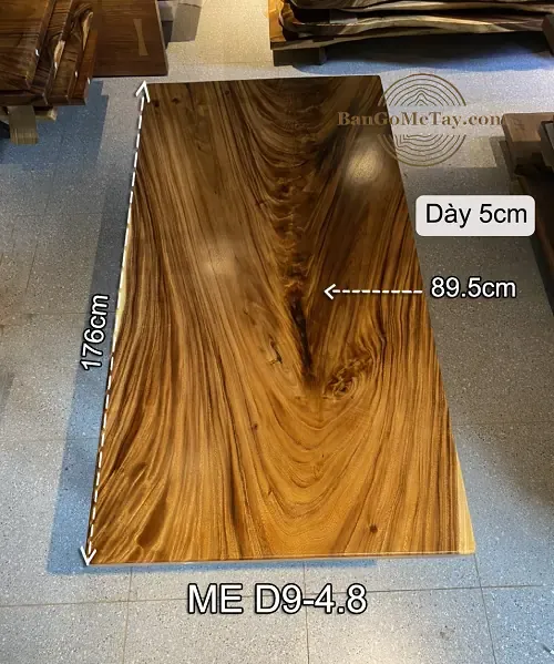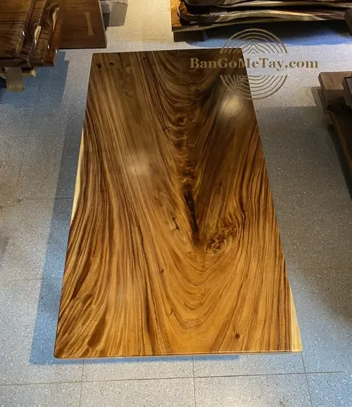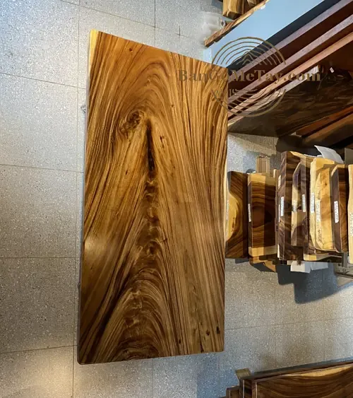 -Chất liệu mặt bàn: gỗ Me Tây nguyên tấm 100%, không cắt ghép