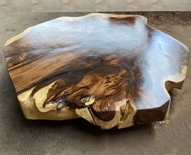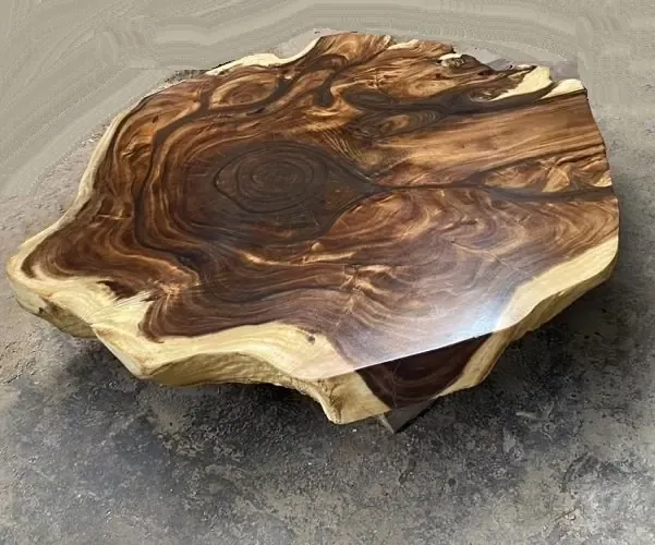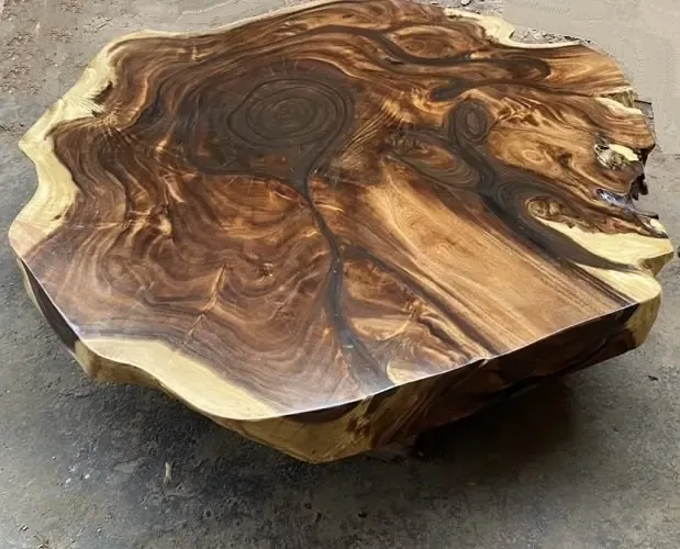 Bàn Trà Nguyên Khối 1m4 Gỗ Me Tây Tròn Tự Nhiên từ cây gỗ me tây lâu năm. Kiểu dáng độc đáo, vân gỗ đẹp tự nhiên không bao giờ đụng hàng, tạo điểm nhấn cho không gian. Sự hòa quyện giữa phần giác màu vàng và phần lõi màu nâu của gỗ Me Tây tạo nên vẻ đẹp độc đáo và khác lạ.