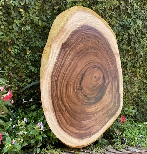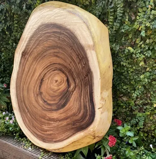 Bàn Tròn Nguyên Khối Gỗ Me Tây Kiểu Tự Nhiên từ cây gỗ me tây lâu năm. Kiểu dáng độc đáo, vân gỗ đẹp tự nhiên không bao giờ đụng hàng, tạo điểm nhấn cho không gian. Sự hòa quyện giữa phần giác màu vàng và phần lõi màu nâu của gỗ Me Tây tạo nên vẻ đẹp độc đáo và khác lạ.