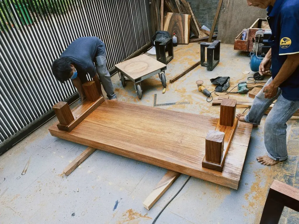 Xưởng bàn gỗ me tây chuyên cung cấp các mặt bàn ăn, bàn làm việc, ghế sofa, bàn cafe vuông vức, tự nhiên, kích thước có thể cưa theo nhu cầu khách hàng lựa chọn, yêu cầu.