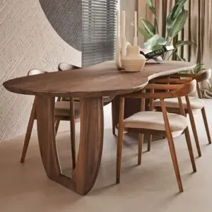 Bàn Oval Hiện Đại Gỗ Nguyên Tấm Kết Hợp Chân Gỗ V