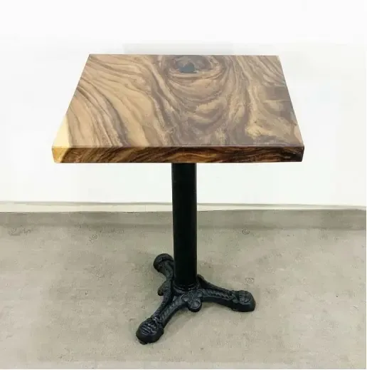 Bàn cafe vuông gỗ me tây chân gang đúc 3 chĩa