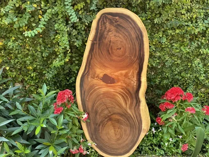 Bàn Cafe Gỗ Nguyên Tấm từ cây gỗ Me Tây lâu năm. Kiểu dáng độc đáo, vân gỗ đẹp tự nhiên không bao giờ đụng hàng, tạo điểm nhấn cho không gian. Sự hòa quyện giữa phần giác màu vàng và phần lõi màu nâu của gỗ Me Tây tạo nên vẻ đẹp độc đáo và khác lạ.