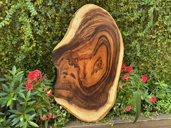 Bàn Nguyên Tấm Gỗ Me Tây Kiểu Tự Nhiên từ cây gỗ me tây lâu năm. Kiểu dáng độc đáo, vân gỗ đẹp tự nhiên không bao giờ đụng hàng, tạo điểm nhấn cho không gian. Sự hòa quyện giữa phần giác màu vàng và phần lõi màu nâu của gỗ Me Tây tạo nên vẻ đẹp độc đáo và khác lạ.