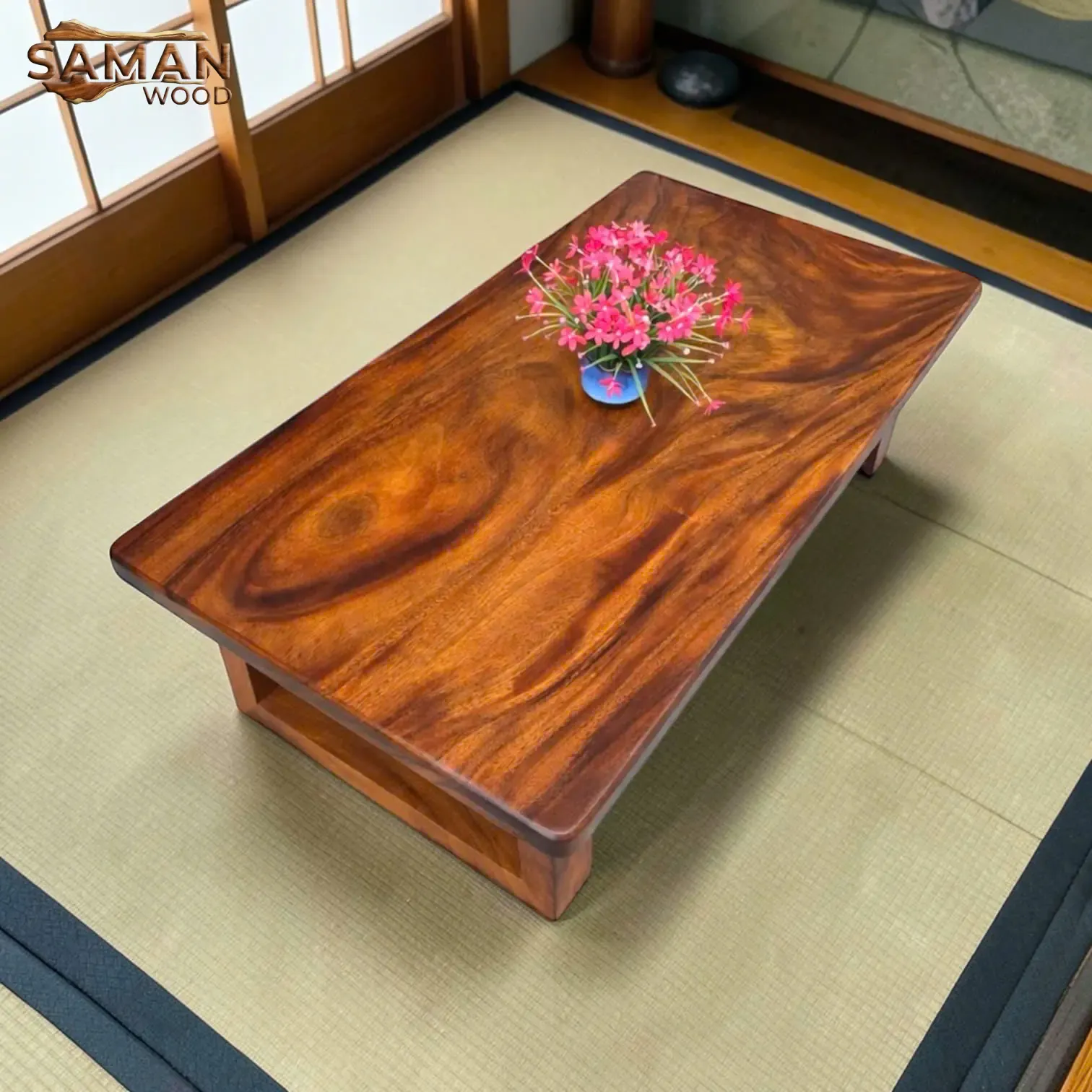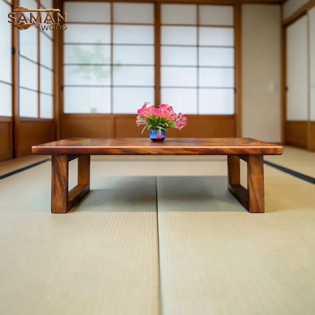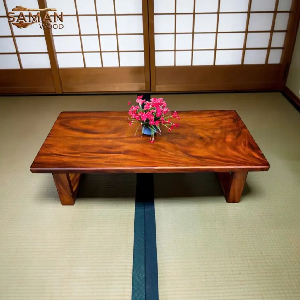 Lựa chọn gỗ Me Tây cho bàn trà đạo ngồi bệt là một sự kết hợp thú vị giữa văn hóa tối giản của Nhật Bản và nét phóng khoáng, nghệ thuật của dòng gỗ tự nhiên Việt Nam.