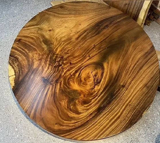 Bàn gỗ Me Tây nguyên tấm đường kính 1m3