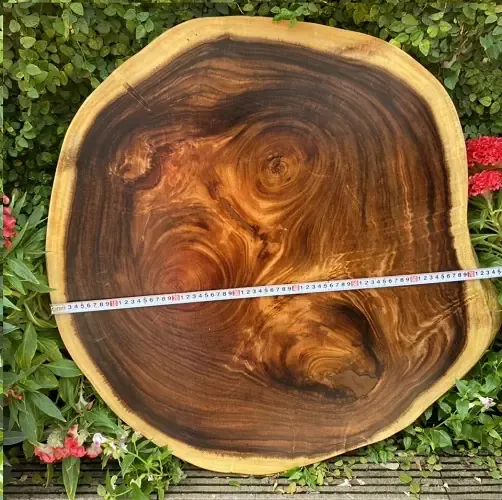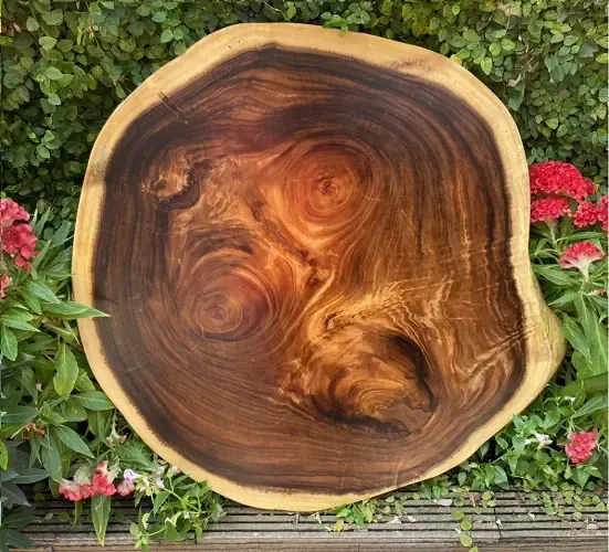 Bàn Tròn Gỗ Me Tây Nguyên Khối Kiểu Tự Nhiên