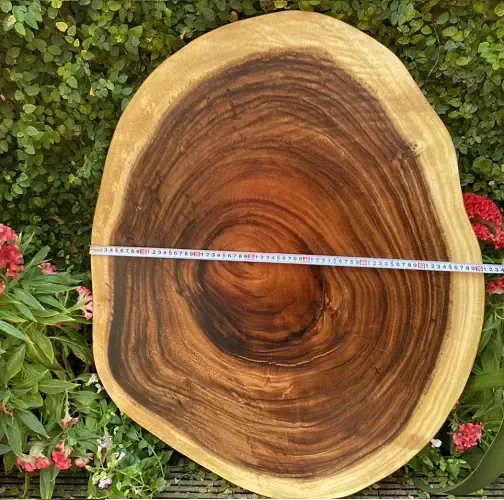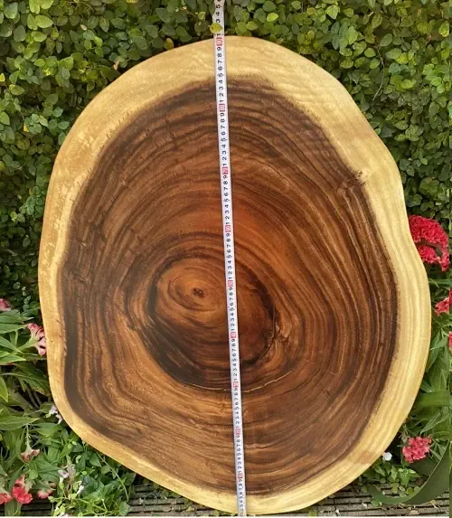 Bàn Tròn Nguyên Khối Gỗ Me Tây Kiểu Tự Nhiên từ cây gỗ me tây lâu năm. Kiểu dáng độc đáo, vân gỗ đẹp tự nhiên không bao giờ đụng hàng, tạo điểm nhấn cho không gian. Sự hòa quyện giữa phần giác màu vàng và phần lõi màu nâu của gỗ Me Tây tạo nên vẻ đẹp độc đáo và khác lạ.