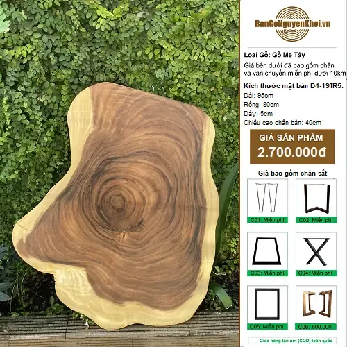 CHÚ Ý:Vì đặc điểm là gỗ Me Tây nguyên tấm nên vân gỗ sẽ không tấm nào giống tấm nào, quý khách sẽ luôn bất ngờ về vẻ đẹp của tấm gỗ mà mình nhận được vì chúng tôi luôn lựa chọn những tấm đẹp nhất làm mặt bàn.