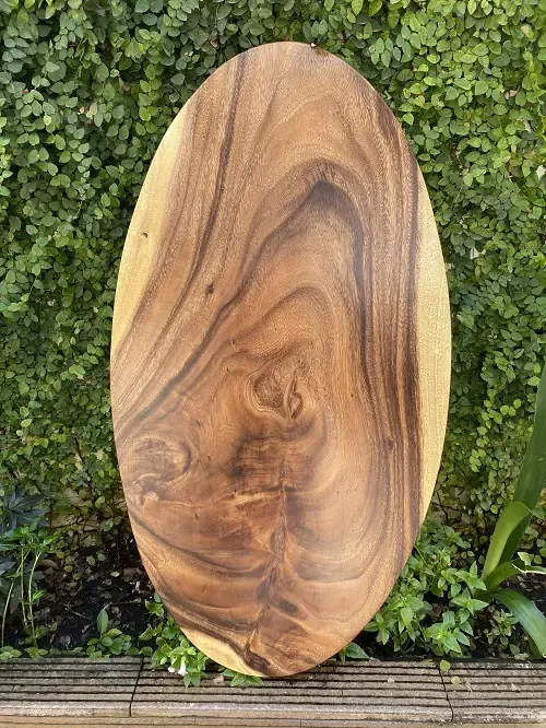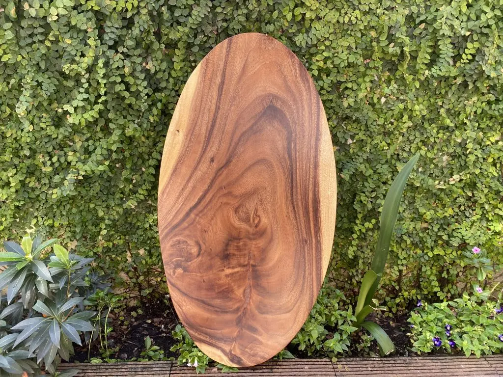 Bàn tròn oval gỗ me tây nguyên tấm tự nhiên 1m