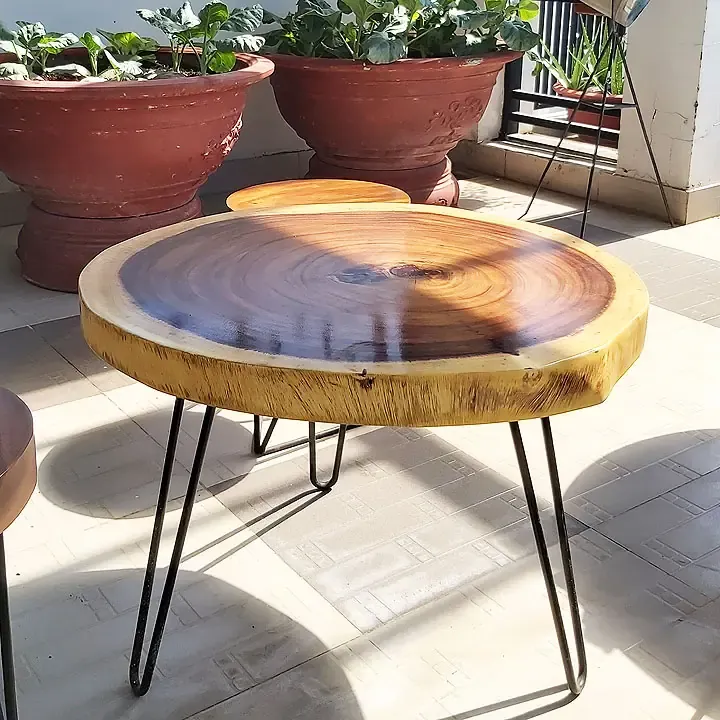 Với mặt bàn tròn được làm từ gỗ me tây nguyên tấm, không ghép hay chắp vá giữ nguyên được màu sắc và vân gỗ một cách tự nhiên, bàn tròn phù hợp để làm bàn sofa, bàn cafe, bàn trà……với các không gian quán cafe hoặc sân vườn, ban công hoặc sofa phòng khách.