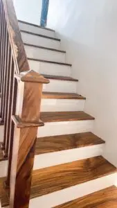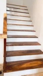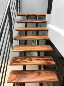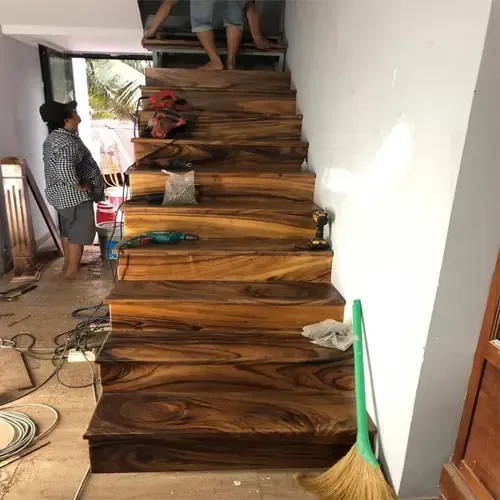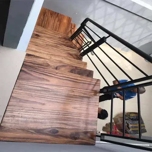 Cầu Thang Gỗ Me Tây không chỉ đơn thuần là một phương tiện để di chuyển giữa các tầng, mà nó còn là một tác phẩm nghệ thuật gợi lên cảm xúc và thăng hoa cho mọi người. Với việc sử dụng gỗ Me Tây tự nhiên, một loại gỗ quý hiếm có màu sắc ấn tượng và vân gỗ độc đáo, cầu thang này không chỉ mang đến vẻ đẹp tinh tế mà còn thể hiện sự kết hợp giữa nghệ thuật và thiên nhiên.