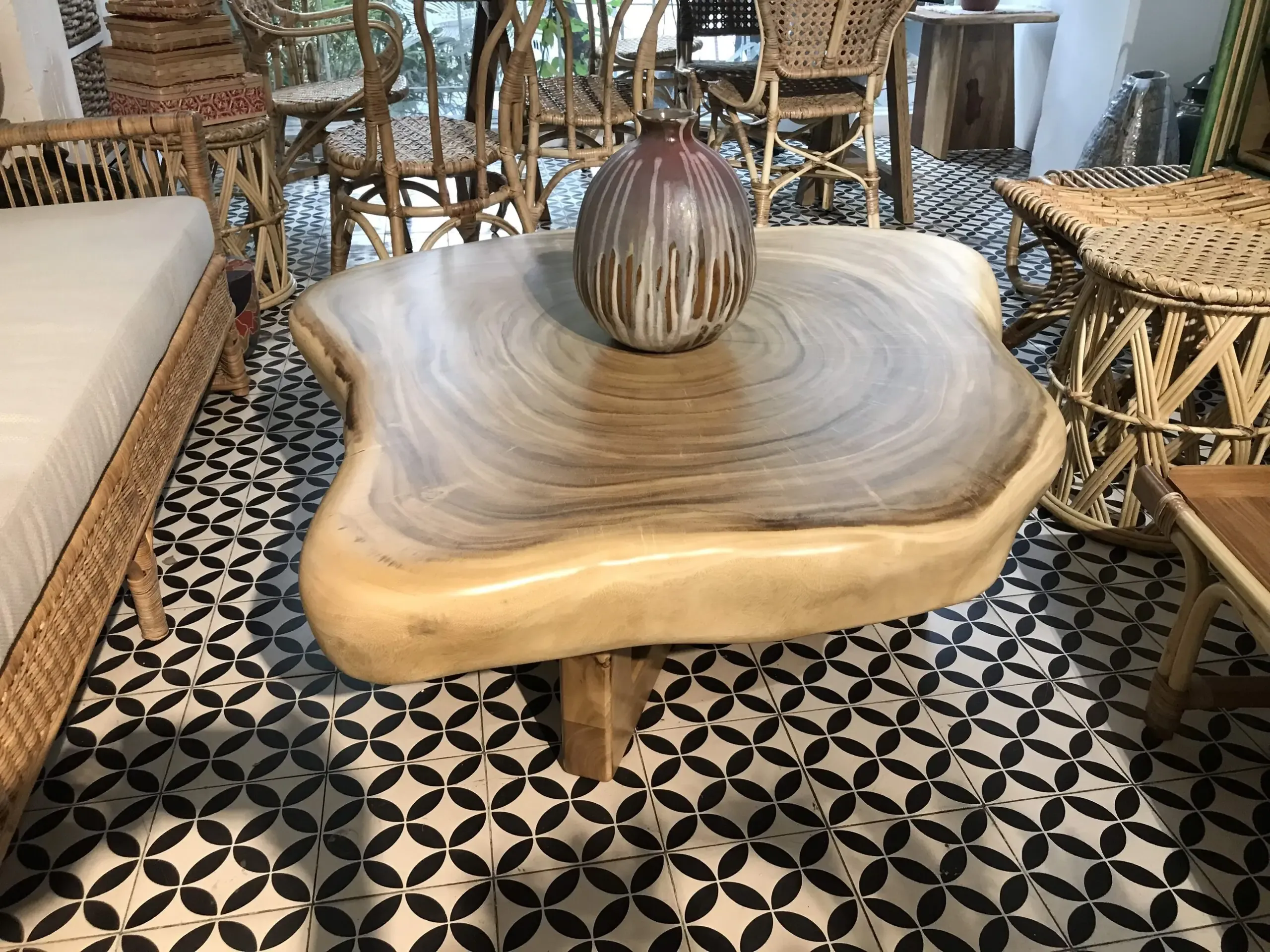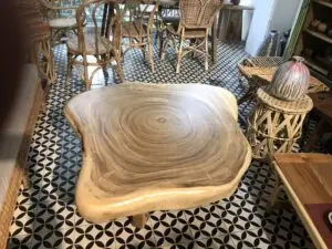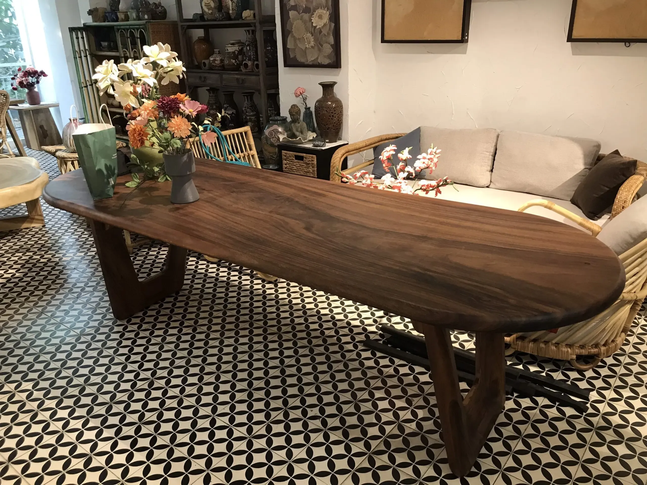 Khách sỉ mới mua bàn gỗ Me Tây Nguyên Tấm để ở Shoroom trưng bày tạo điểm nhấn cho không gian thêm sinh động với mặt bàn tự nhiên nguyên tấm phong cách mộc.