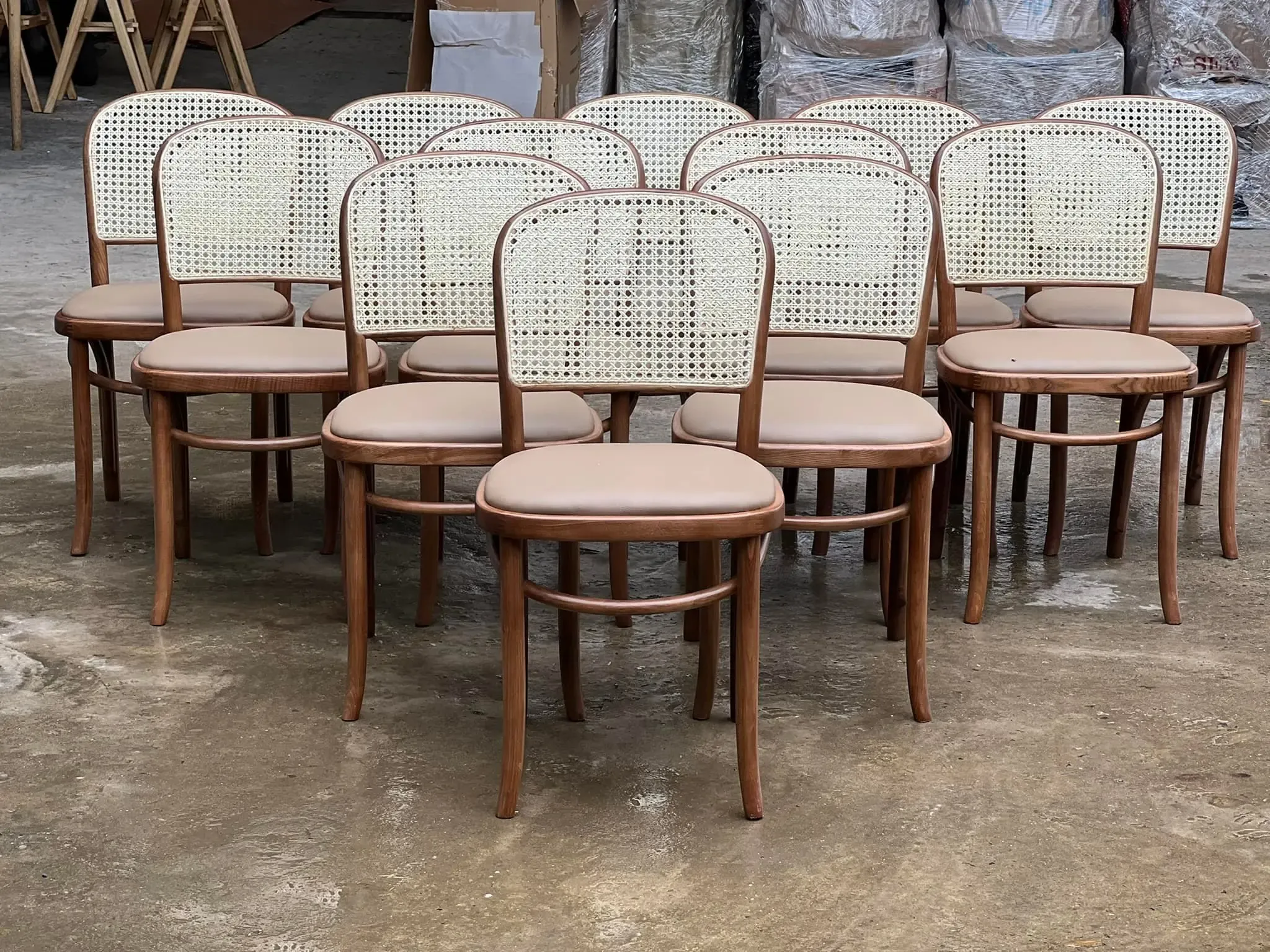 Với không gian quán cafe hay nhà hàng phong cách Vintage thì ghế ăn Thonet tựa mây sẽ là điểm nhấn mới cho quán bởi tính độc lạ và mới mẻ mà nó đem lại