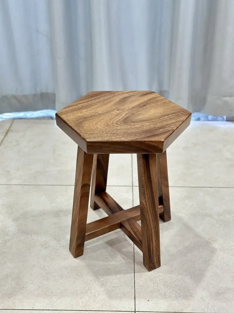 Ghế Đẩu Mặt Lõm Gỗ Me Tây Cao 33cm