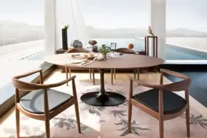 Ghế Kennedy kết hợp cùng bàn ăn tròn gỗ tự nhiên