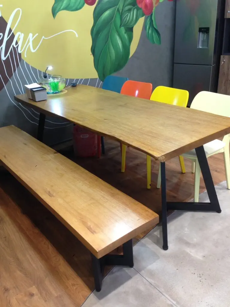 Xưởng bàn gỗ me tây chuyên cung cấp các mặt bàn gỗ nguyên khối vuông vức, tự nhiên, kích thước có thể cưa theo nhu cầu khách hàng lựa chọn, yêu cầu.