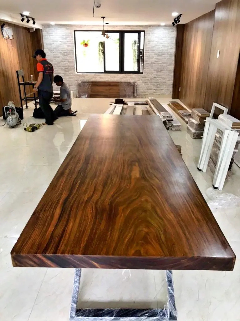 Bàn giao bàn gỗ nguyên tấm không cắt ghép gỗ Lim Vàng cho khách hàng ở Phú Nhuận, được thực hiện bởi bangonguyentam.vn. Hotline/Zalo: 0812.286.286