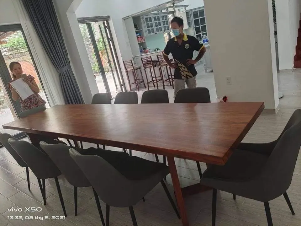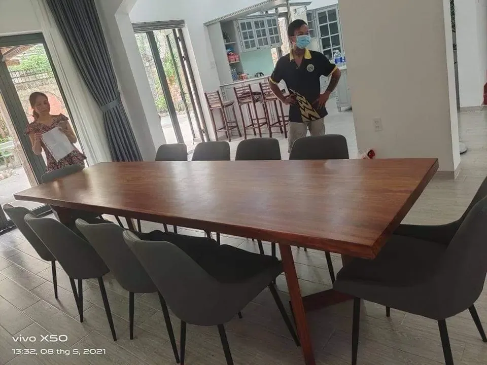 Bàn giao bàn gỗ nguyên tấm không cắt ghép gỗ Lim Vàng cho khách hàng ở Vũng Tàu, được thực hiện bởi bangonguyentam.vn. Hotline/Zalo: 0812.286.286