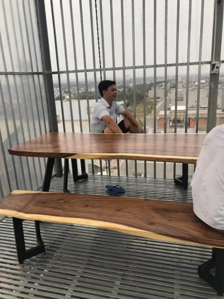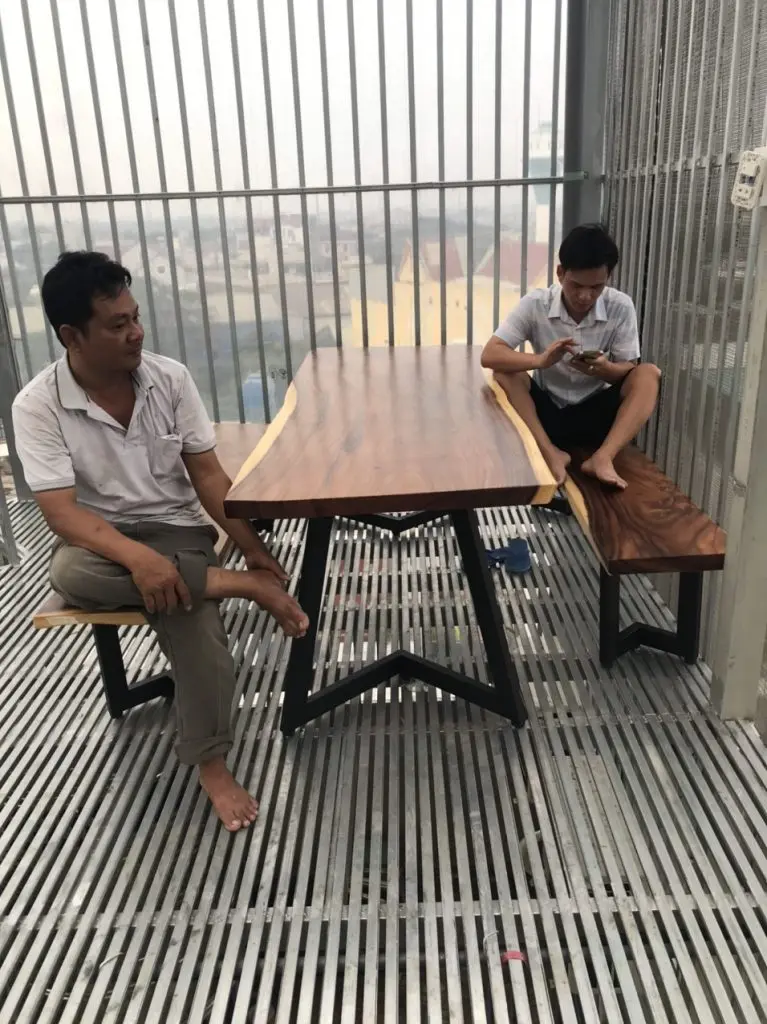 Dự Án Giao Cho khách Hàng Bộ Bàn Ghế Gỗ Me tây Dài 1m8, rộng 80cm, Dày 5cm cho khách hàng tại Bình Thạnh Được Thực Hiện bởi bangonguyentam.vn. Hotline/Zalo: 0812.286.286