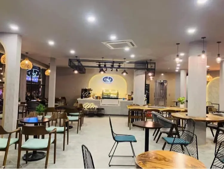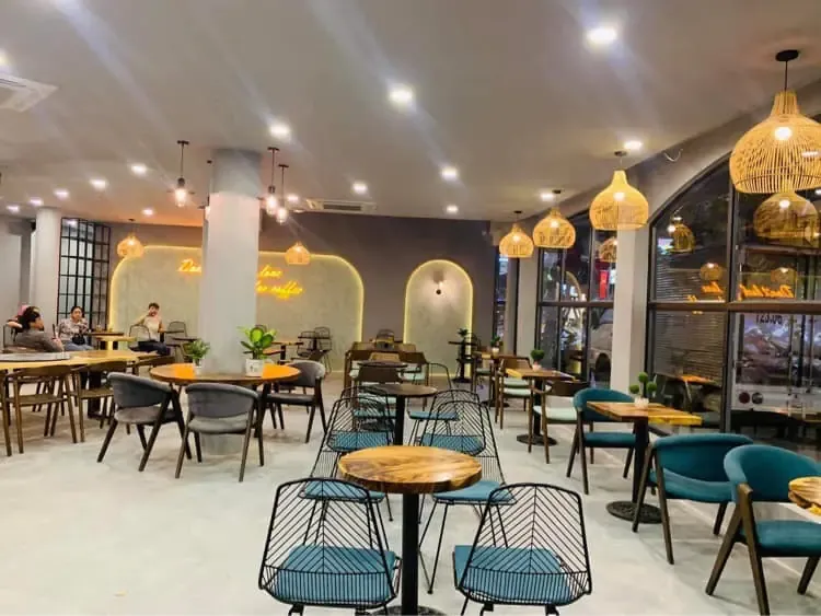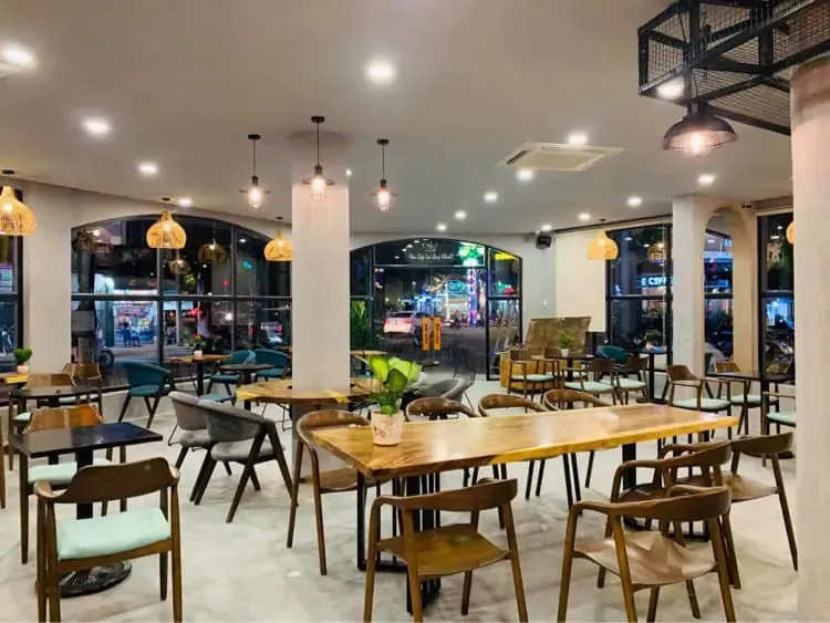 Khách mua bàn ghế gỗ Me Tây Nguyên Tấm cho quán trà sữa, cafe tạo điểm nhấn cho không gian quán thêm sinh động với mặt bàn tự nhiên nguyên tấm phong cách mộc.