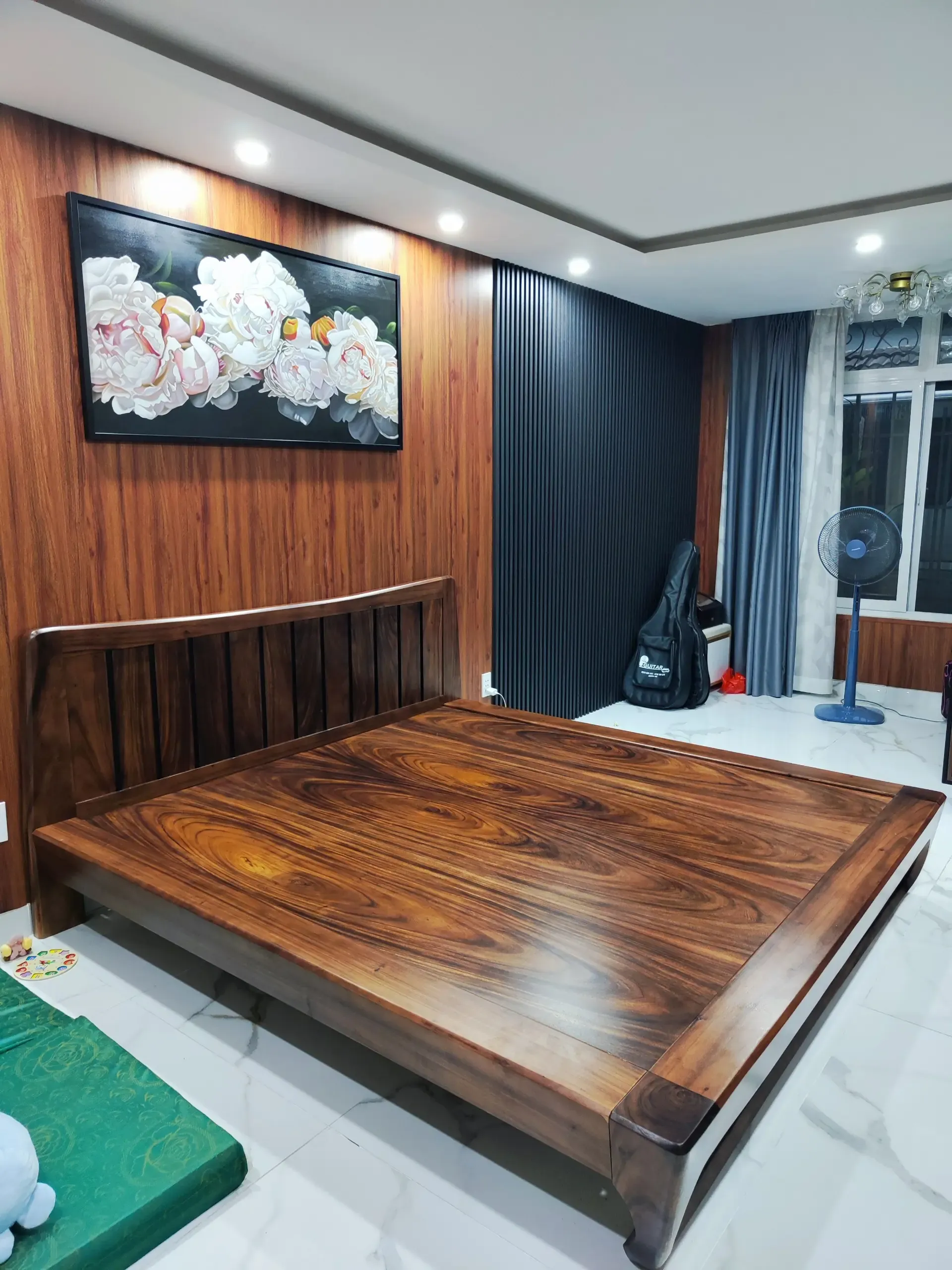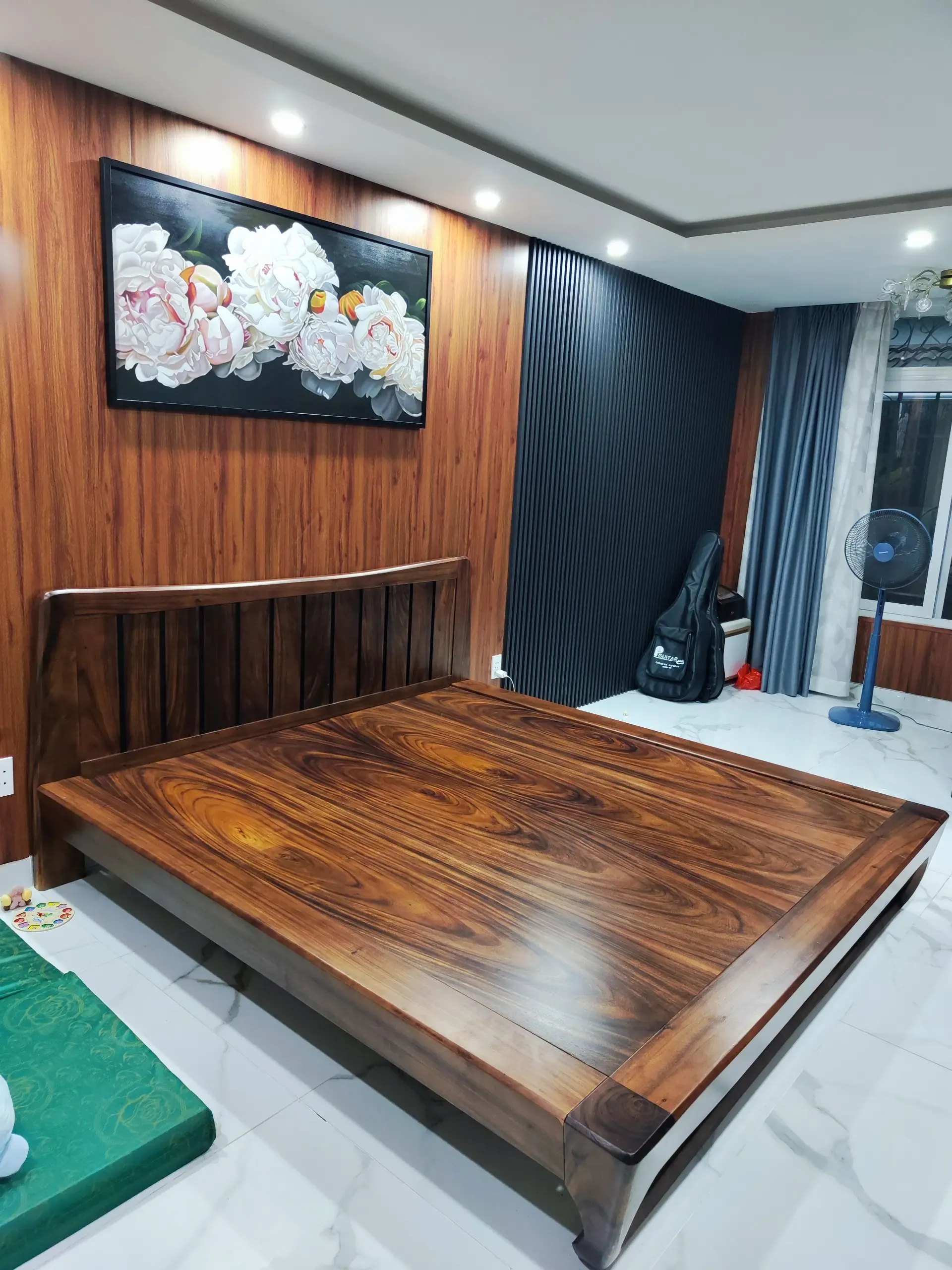 Giường ngủ gỗ me tây được chế tác hoàn toàn từ gỗ me tây. Với những đường nét tối giản nhưng không kém phần tinh tế, sản phẩm trên sẽ làm nổi bất lên sự tự nhiên nhưng vẫn có nét hiện đại cho không gian phòng ngủ của bạn. Sản phẩm trên được đánh bóng bằng các loại dầu tự nhiên làm tăng vẻ đẹp của gỗ.