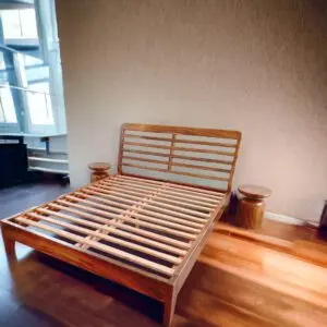 Giường ngủ gỗ me tây được chế tác hoàn toàn từ gỗ me tây. Với những đường nét tối giản nhưng không kém phần tinh tế, sản phẩm trên sẽ làm nổi bất lên sự tự nhiên nhưng vẫn có nét hiện đại cho không gian phòng ngủ của bạn. Sản phẩm trên được đánh bóng bằng các loại dầu tự nhiên làm tăng vẻ đẹp của gỗ.